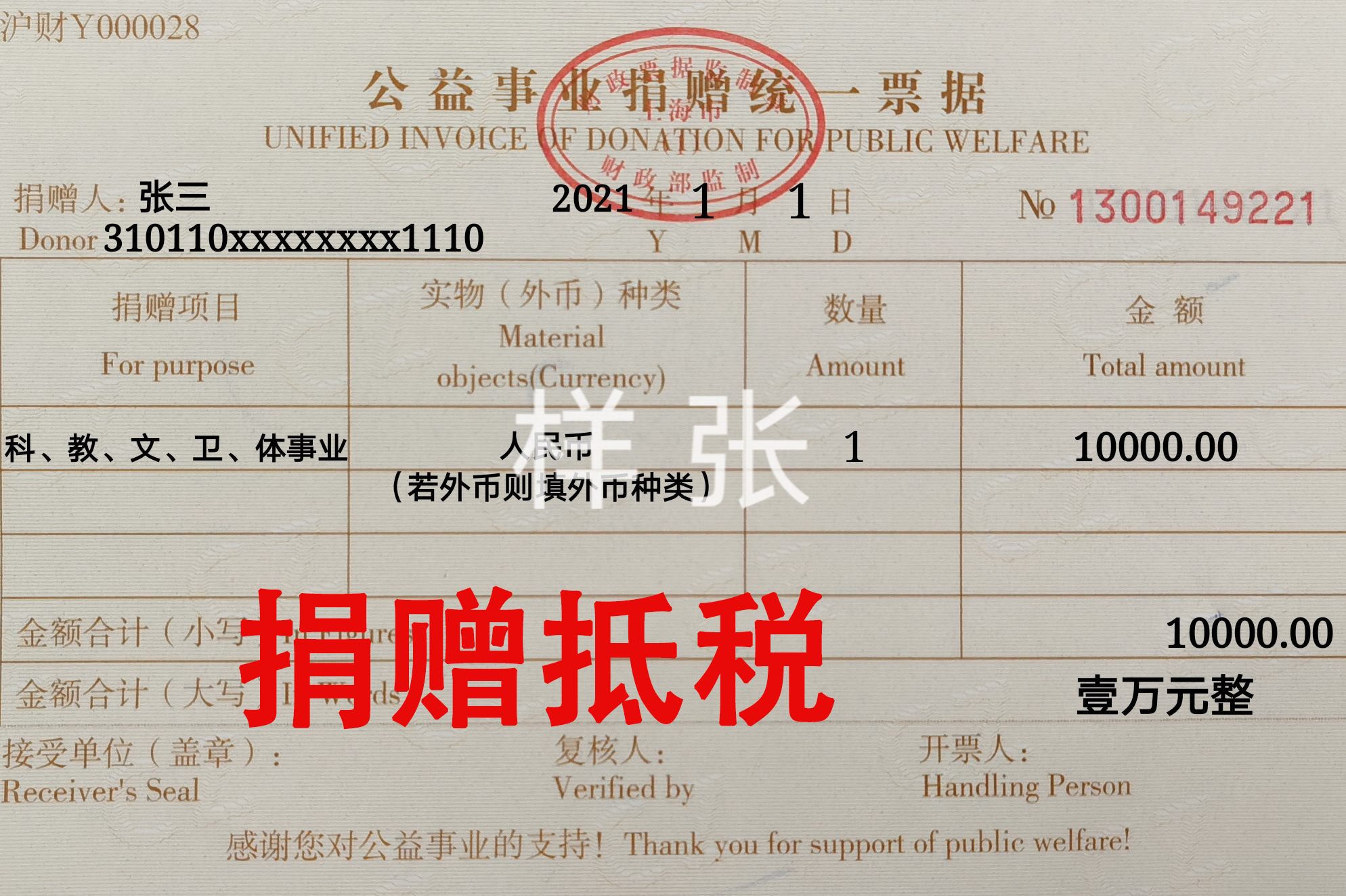 关于上海交通大学教育发展基金会捐赠税收的说明及捐赠票据样张