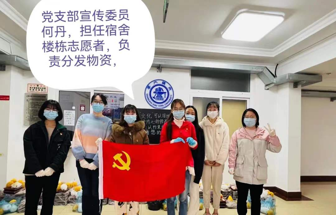 学生党支部党员在学校封闭期间从事多项服务工作,坚持奋战在一线,担任驻宿舍辅导员、楼长、层长、套间长、课题组临时联络人等,同时参与各类志愿者活动,负责对接、运送、分发各类物资,他们用实际行动充分展现了当代大学生志愿者的青春风采。